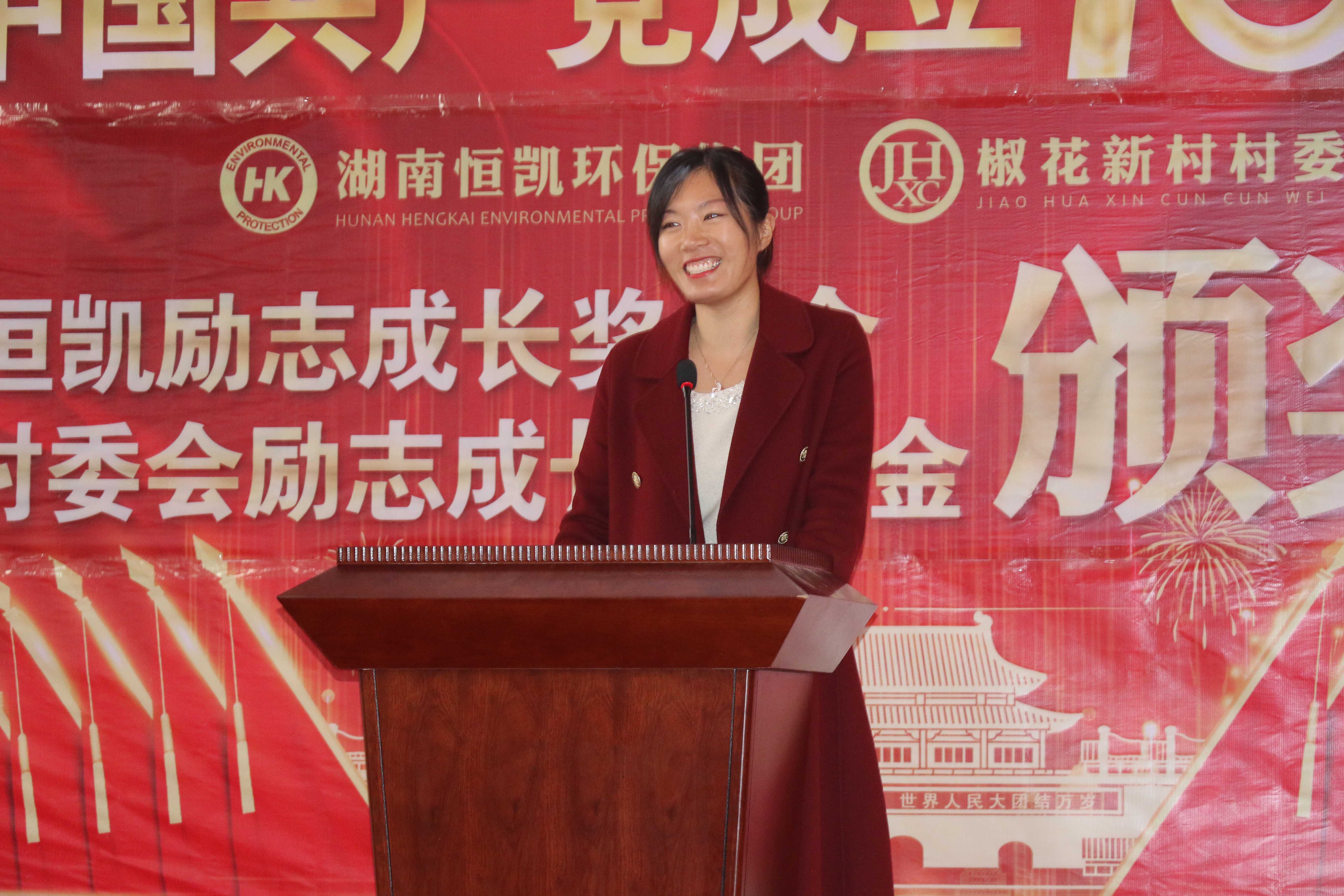 會上,盧校長致歡迎詞,對恒凱環(huán)保及椒花新村村委會的慷慨助學表示衷心感謝,贊揚恒凱環(huán)保在改造教學樓、新建學生綜合實踐場所等一系列幫扶行動中所體現(xiàn)的民企擔當,并對獲獎同學表示祝賀,鼓勵同學們再接再厲、勤奮學習,以實際行動回饋社會。